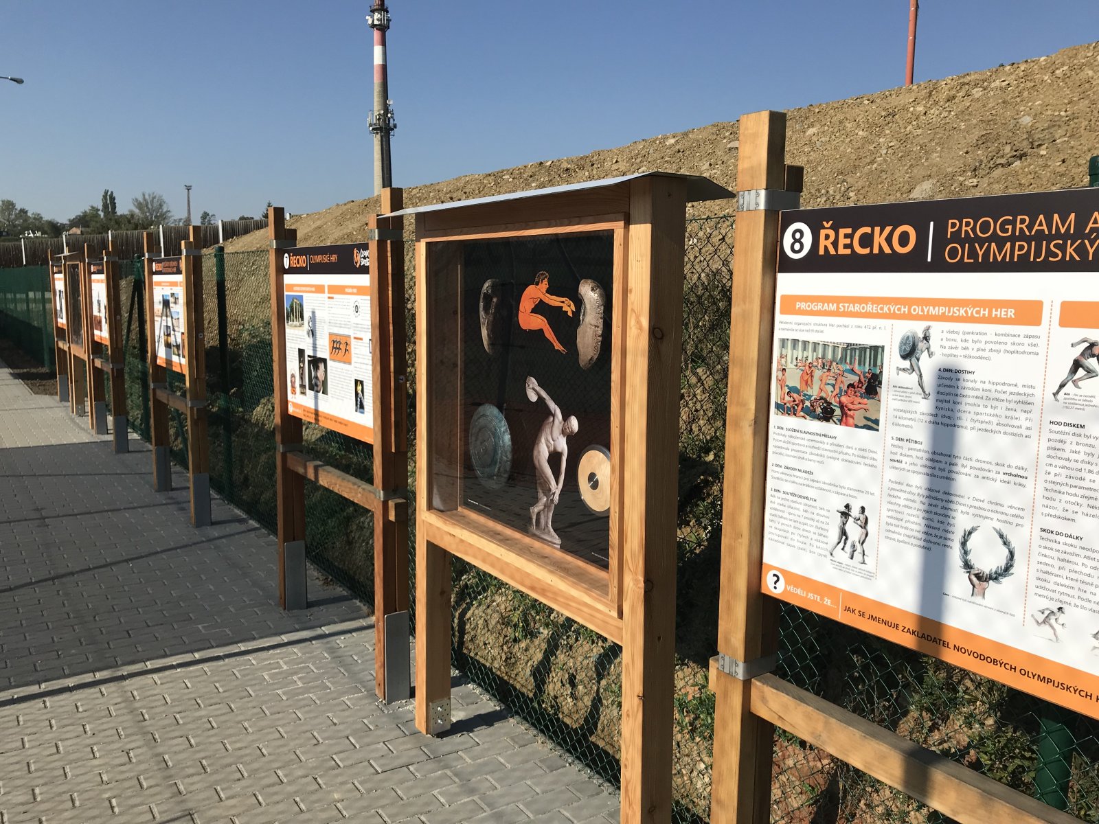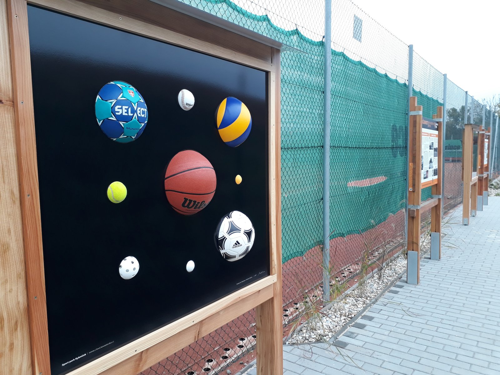 Součástí stezky je také dřevěné Človíčkovo hřiště, kde si děti mohou prakticky vyzkoušet své dovednosti.